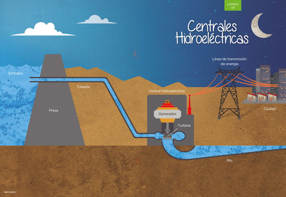 Figura 73: Componentes y esquema de funcionamiento de una central hidráulica